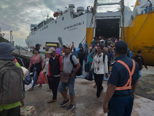 "Rata-rata penumpang yang baru datang ini berasal dari Surabaya dan Semarang yang diangkut oleh tiga kapal yaitu kapal KM Dharma Rucitra 9, KM Egon dan KM Leuser," jelas Capt. Wahyu.