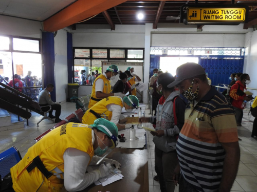 Ia menyampaikan bahwa pemeriksaan Rapid Test juga dilakukan kepada para penumpang kapal sesuai Surat Keterangan dari Dinas Kesehatan Provinsi Papua. “Protokol kesehatan seperti jaga jarak, menggunakan masker dan menjaga kebersihan tetap diutamakan,” tegas Ferra.