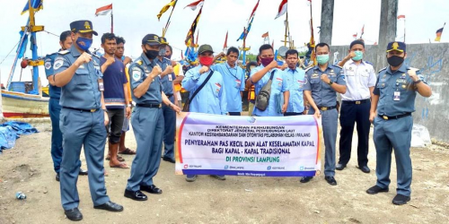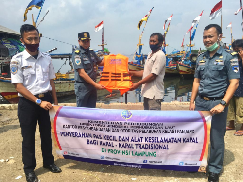 BANDAR LAMPUNG (19/6) – Kementerian Perhubungan cq Direktorat Jenderal Perhubungan Laut melalui Kantor Kesyahbandaran dan Otoritas Pelabuhan (KSOP) Kelas I Panjang memberikan bantuan secara gratis berupa Pas Kecil Kapal Tradisonal dan Alat Keselamatan Kapal kepada para nelayan dan awak kapal tradisional di Provinsi Lampung.