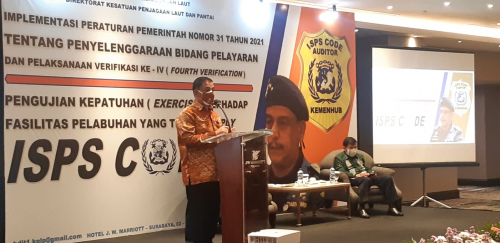 Oleh karena itu, KPLP menggelar kegiatan Implementasi PP No. 31 Tahun 2021 Verifikasi ke IV dan pengujian Kepatuhan Exercise ISPS Code yang dilangsungkan di Hotel JW Marriott, Surabaya 2 - 4 September 2021.