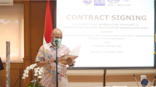 Penandatanganan kontrak dilakukan oleh Senior Vice President Infrastruktur PT. Amarta Karya (Persero), Donald Pandapotan Silalahi bersama Pejabat Pembuat Komitmen Satuan Kerja Peningkatan Fungsi Kepelabuhanan Pusat, Fandhika Putera Santoso dan disaksikan oleh Pelaksana Tugas (Plt) Direktur Jenderal Perhubungan Laut dalam hal ini diwakili Direktur Kepelabuhanan, Subagiyo.