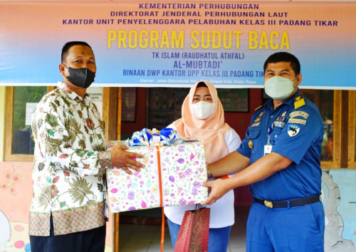 PADANG TIKAR (22/11). Kementerian Perhubungan cq Direktorat Jenderal Perhubungan Laut melalui Dharma Wanita Persatuan (DWP) Kantor Unit Penyelenggara Pelabuhan (UPP) Kelas III Padang Tikar melakukan soft launching Program Sudut Baca pada sekolah PAUD/TK Al-Mubtadi sebagai PAUD/TK binaan. Kegiatan ini merupakan rangkaian peringatan bulan bahasa yang jatuh pada bulan Oktober.
