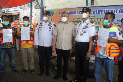 KESELAMATAN PELAYARAN, KEMENHUB BAGIKAN RATUSAN PAS KECIL DAN LIFE JACKET GRATIS UNTUK NELAYAN DI PAREPARE