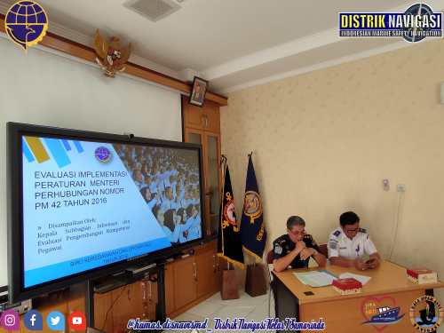 (13/11) Biro Kepegawaian dan Organisasi melakukan Sosialisasi tentang Evaluasi Implementasi Peraturan Menteri Perhubungan Nomor PM 42 Tahun 2016 di Ruang Rapat Distrik Navigasi Kelas I Samarinda untuk Mengimplementasikan kembali PM Perhubungan Nomor PM 42 Tahun 2016.