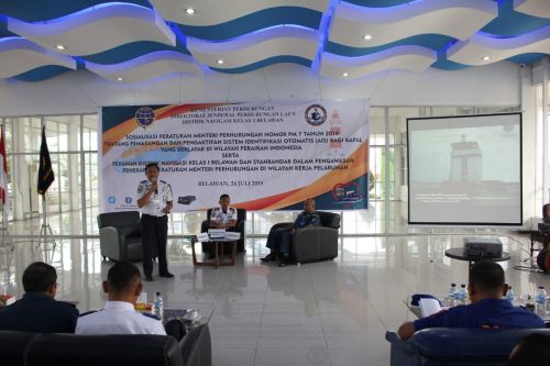 MEDAN (25/7) - Dalam rangka optimalisasi fungsi layanan Telekomunikasi Pelayaran Ditjen Perhubungan Laut terkait pemberian informasi kenavigasian guna menunjang keselamatan pelayaran, Kementerian Perhubungan cq. Direktorat Jenderal Perhubungan Laut melalui Distrik Navigasi Kelas I Belawan mengadakan sosialisasi Peraturan Menteri Perhubungan Nomor PM.7 Tahun 2019 Tentang Pemasangan dan Pengaktifan Sistem Identifikasi Otomatis (Automatic Identification System/AIS) bagi kapal yang belayar di wilayah Perairan Indonesia di Terminal Penumpang Bandar Deli, Belawan, Rabu (24/7).