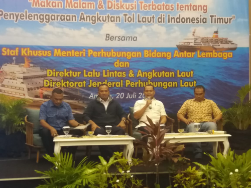 Sebagai informasi, Diskusi Terbatas mengenai Penyelenggaraan Tol Laut di Indonesia Timur dihadiri oleh Staf Khusus Menteri Perhubungan bidang Nntar Lembaga, Buyung Lalana, Direktur Lalu Lintas dan Angkutan Laut, Capt. Wisnu handoko, Ketua Komisi C DPRD provinsi Maluku, Anos Yeremias, perwakilan PT. Pelindo IV, PT. Pelni dan beberapa awak media di wilayah Ambon dan sekitarnya.