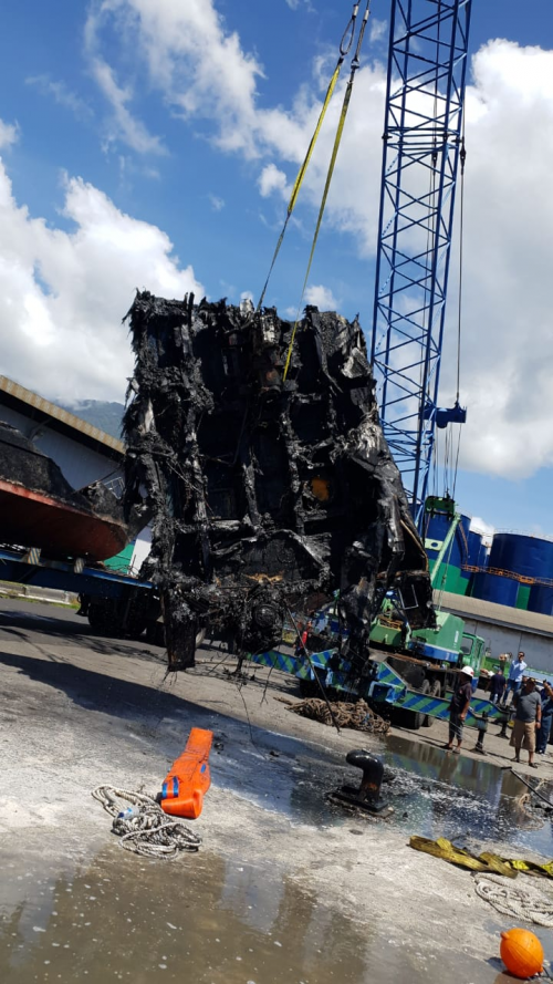 Ahmad menjelaskan bahwa ia sudah mendapatkan laporan dari KSOP Bitung bahwa hari ini (21/2) pengangkatan kerangka kapal patroli KPLP yang terbakar tersebut sudah mulai dilakukan agar tidak mengganggu operasional kapal-kapal lainnya.