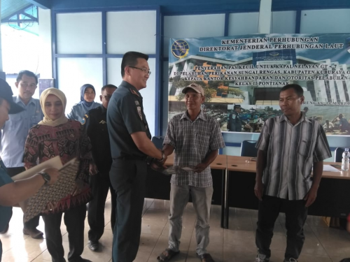 Penyerahan 100 pas kecil kapal penangkap ikan di bawah GT 7 tersebut dilakukan oleh Kepala KSOP Klas II Pontianak, Capt. Bintang di Pelabuhan Perikanan Sungai Rengas, Kabupaten Kubu Raya, Kalimantan Barat pada hari ini (14/3).