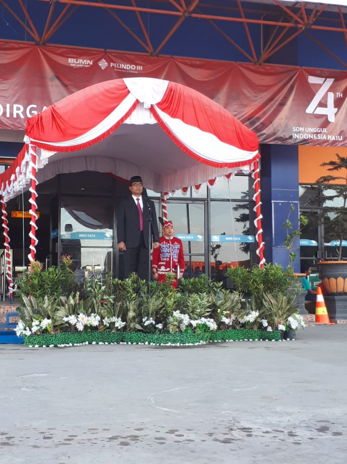 Demikian sambutan Menteri Perhubungan RI Budi Karya Sumadi yang disampaikan oleh Direktur Jenderal Perhubungan Laut R. Agus H. Purnomo saat memimpin Upacara HUT ke-74 RI yang berlangsung di Dermaga Terminal Penumpang Bandarmasih, Pelabuhan Trisakti, Banjarmasin, Kalimantan Selatan, hari ini (17/8).