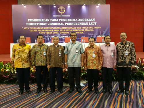 Kegiatan Pembekalan para Pengelola Anggaran di Lingkungan Ditjen Perhubungan Laut Tahun Anggaran 2018 diikuti oleh para pengelola anggaran baik di kantor pusat Ditjen Hubla maupun UPT daerah, dengan menghadirkan narasumber dari Inspektorat Jenderal dan Biro Keuangan dan Perlengkapan Kementerian Perhubungan, Kementerian Keuangan, serta Badan Pengawasan Keuangan dan Pembangunan (BPKP). Adapun tema yang diangkat pada kegiatan ini yaitu “Kita Tingkatkan Kedisiplinan Administrasi dan Tanggungjawab dalam Pelaksanaan APBN TA 2018 untuk Mencapai Belanja yang Tepat Guna, Optimal dan Efisien”.