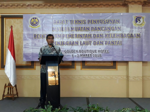 pembukaan kegiatan Rapat Teknis Penyusunan Materi Muatan Rancangan Peraturan Pemerintah dan Kelembagaan Penjagaan Laut dan Pantai.