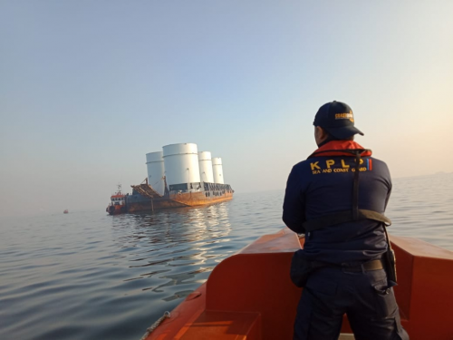 Petugas KPLP dari KSOP Marunda diterjunkan langsung untuk mengecek kapal Tug Boat UJ 007 yang berlabuh 25 mil dari pintu masuk Pelabuhan Marunda dan memastikan seluruh awak kapal dalam keadaan selamat serta membawa para awak kapal ke kantor KSOP Marunda.
