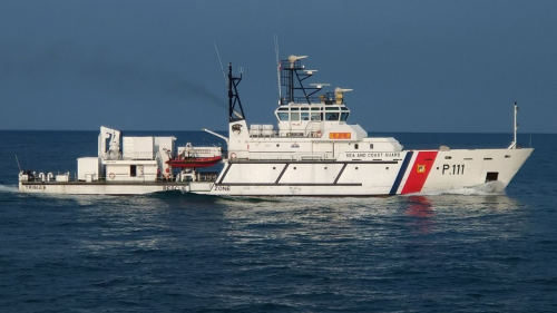 KAPAL PATROLI KNP TRISULA AMANKAN ALUR PELAYARAN SEKITAR LOKASI KEBOCORAN PIPA GAS DI BOJONEGARA