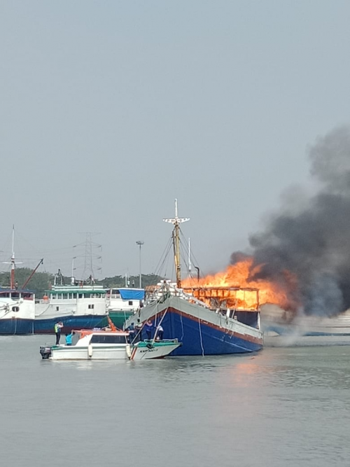 QRT KSOP GRESIK BERTINDAK CEPAT, KEBAKARAN KAPAL KLM SINAR TIMUR DI GRESIK BERHASIL DIPADAMKAN