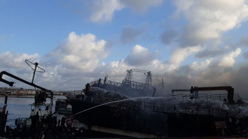 Kapal-kapal ikan yang terbakar tersebut diantaranya milik PT. Tirta Katulistiwa Farming (TKF) terdiri dari 1 unit kapal yang masih aktif dan 5 unit kapal yang pasif.