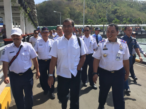 Usai melepas bantuan untuk para korban gempa, Dirjen Agus  melaksanakan pengecekan Gili Mas pembangunan Pelabuhan PT. Pelindo III dan Pelabuhan ASDP Ferry.