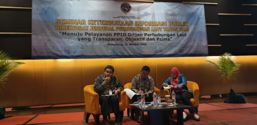 PALEMBANG (25/10) - Seperti pada tahun-tahun sebelumnya, Direktorat Jenderal Perhubungan Laut kembali menyelenggarakan Seminar Keterbukaan Informasi Publik (KIP) yang pada tahun 2018 ini mengangkat tema "Menuju Pelayanan PPID Ditjen Perhhubungan Laut yang Transparan, Objektif dan Prima".