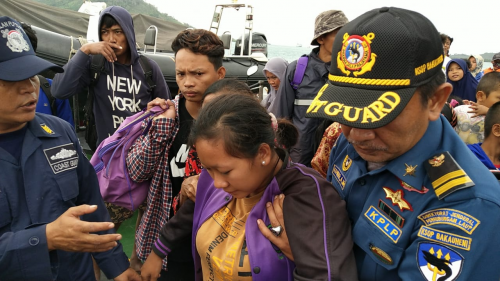 Direktur Kesatuan Penjagaan Laut dan Pantai, Junaidi mengemukakan bahwa kapal patroli KPLP KNP. Jembio P.215 semula untuk mengantarkan bantuan kemanusiaan namun setibanya di Pulau Sebuki dan Sebesi terdapat para pengungsi yang meminta untuk diangkut keluar dari pulau tersebut.