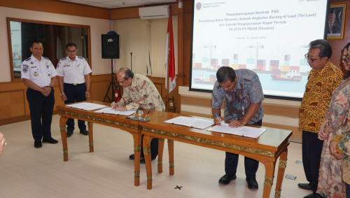 Penandatanganan kontrak Penyelenggaraan PSO Penumpang Kelas Ekonomi dilakukan oleh Direktur Jenderal Perhubungan Laut, R. Agus H. Purnomo dengan Direktur Utama PT. Pelni, Insan Purwarisya L. Tobing. Sedangkan untuk kontrak subsidi angkutan barang di laut (tol laut) dan angkutan khusus ternak dilakukan oleh Pejabat Pembuat Komitmen (PPK) yang juga menjabat sebagai Kepala Seksi Tramper dan Pelayaran Rakyat, Hasan Sadili bersama Direktur Usaha Angkutan Barang dan Tol Laut PT. Pelni, Harry Boediarto.