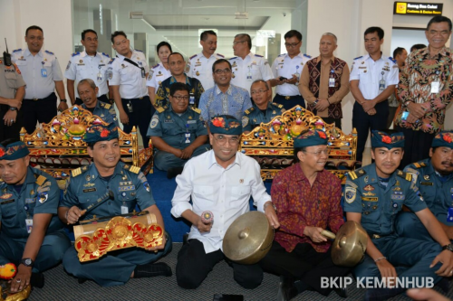 Dalam kunjungannya ke Pelabuhan Benoa, Menhub didampingi Gubernur Bali Wayan Koster, Dirjen Perhubungan Laut Agus H. Purnomo dan Dirut Pelindo III Doso Agung. Menhub dan Gubernur Bali kompak bermain gamelan bersama personil Kesatuan Penjaga Laut dan Pantai (KPLP) dari Kantor Kesyahbandaran dan Otoritas Pelabuhan (KSOP) Benoa yang menyambut kedatangannya. (LKW/RDL/YSP/HA).