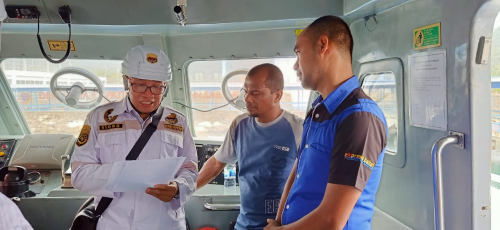 Tim Uji Petik Kantor Pusat  dengan didampingi Kepala Kantor  Kesyahbandaran dan Otoritas Pelabuhan ( KSOP) Kelas IV Sabang, Sutarmo dan  Marine Inspector KSOP Sabang, Heru Kurniawan langsung berbagi tugas untuk melakukan pemeriksaan kapal dan memastikan fasilitas kapal telah memenuhi persyaratan keselamatan pelayaran.