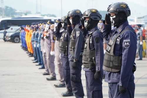 MERAK, BANTEN (27/6) – Kementerian Perhubungan Cq. Direktorat Jenderal Perhubungan Laut menggelar Apel Kesiapan dan Simulasi Patroli Penegakan Hukum Traffic Separation Scheme (PATGAKUM TSS) Selat Sunda dan Selat Lombok bertempat di Pelabuhan Merak, Banten.