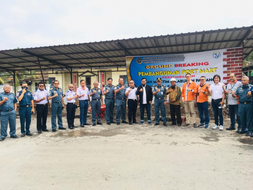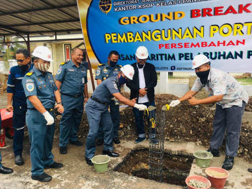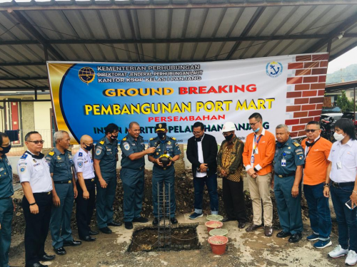 BANDAR LAMPUNG (23/7) - Kepala Kantor Kesyahbandaran dan Otoritas Pelabuhan (KSOP) Kelas I Panjang, Andi Hartono melaksanakan peletakan batu pertama (ground breaking) pembangunan Port Mart persembahan Insan Maritim Pelabuhan Panjang di halaman Kantor KSOP Panjang Lampung, (22/7).