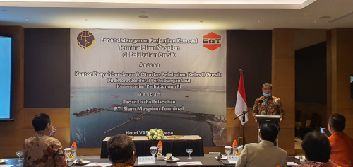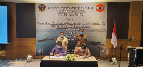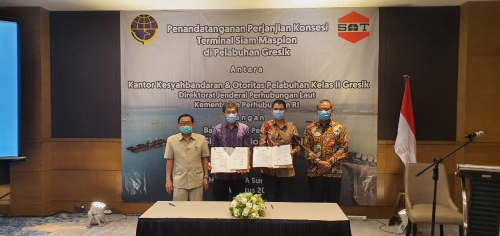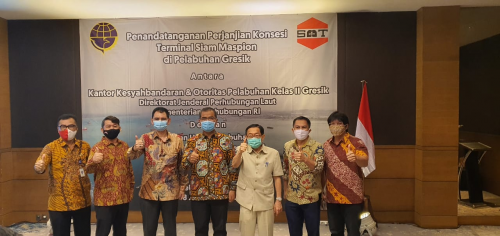 SURABAYA (9/7) - PT. Siam Maspion Terminal (SMT) resmi mengelola Terminal Siam Maspion di Pelabuhan Gresik yang ditandai dengan penandatanganan perjanjian konsesi antara Kantor Kesyahbandaran dan Otoritas Pelabuhan (KSOP) Kelas II Gresik dengan Badan Usaha Pelabuhan (BUP) PT. SMT di Surabaya, Jawa Timur. Direktur Jenderal Perhubungan Laut R. Agus H. Purnomo mengatakan, usai ditandatanganinya perjanjian konsesi oleh Kepala Kantor KSOP Kelas II Gresik R. Totok Mukarto dan Direktur PT. SMT Marianus Oei, Pemerintah telah secara resmi memberikan penugasan dan hak konsesi kepada PT. SMT untuk melakukan pengusahaan jasa kepelabuhanan pada Terminal Siam Maspion selama jangka waktu konsesi yang telah disepakati, yakni selama 43 tahun dengan besaran pendapatan konsesi sebesar 2,5% dari pendapatan kotor (bruto). Menurut Dirjen Agus, sejak diterbitkannya Undang-Undang Nomor 17 Tahun 2008 tentang Pelayaran, telah membuka kesempatan yang seluas-luasnya bagi investor baik swasta maupun BUMN/BUMD untuk menanamkan modalnya dalam bidang kepelabuhanan. "Konsesi menjadi poin penting dalam memulai investasi baik untuk pengelolaan terminal maupun pelabuhan. Konsesi juga menjadi kunci utama daripada bisnis pelabuhan itu sendiri," katanya. Pihaknya memberikan apresiasi kepada PT. SMT yang telah menjadi BUP swasta murni pertama di Provinsi Jawa Timur yang mendapatkan penunjukan konsesi sebagai pelaksana kegiatan pengusahaan jasa kepelabuhanan pada Terminal Siam Maspion di Pelabuhan Gresik. "Dengan adanya kerjasama antara Pemerintah selaku regulator dengan BUP swasta murni ini diharapkan dapat meningkatkan efisiensi logistik nasional sehingga nantinya dapat menekan biaya logistik serta berkontribusi pada kesejahteraan masyarakat sekitar pelabuhan," ujar Dirjen Agus. Sementara itu, Kepala Kantor KSOP Kelas II Gresik R. Totok Mukarto mengatakan bahwa Pelabuhan Gresik memiliki lokasi dan potensi yang sangat strategis. "Pelabuhan Gresik berada di dekat Pelabuhan Tanjung Perak Surabaya dan lokasinya sangat strategis untuk dapat menjadi penghubung kawasan barat dan timur Indonesia," tutur Totok. Ia berharap keberadaan Terminal Siam Maspion di Pelabuhan Gresik mampu memberikan nilai tambah bagi pertumbuhan ekonomi, sehingga daerah hinterland-nya dapat berkembang lebih pesat lagi dan menjadi salah satu penopang arus investasi di Indonesia. "Dengan konsesi ini diharapkan dapat memberikan kontribusi untuk mendukung program Pemerintah dalam upaya meningkatkan kelancaran logistik nasional yang efisien serta peningkatan kapasitas layanan kepelabuhanan di Pelabuhan Gresik," terangnya. Adapun PT. SMT adalah perusahaan Joint Venture antara PT. Maspion Investindo (Maspion Group) dengan SCG Chemical Pte. Ltd. (SCG Group Thailand) yang berdiri sejak tahun 1995 dan beroperasi secara komersial tahun 1998, sebagai pemilik dan pengelola TUKS di lingkungan Kawasan Industri Maspion – Manyar – Gresik. PT. SMT telah memiliki ijin usaha sebagai BUP sejak tahun 2010 dan ke depan PT. Maspion juga akan bekerja sama dengan Dubai Port World untuk mengembangkan Terminal Kontainer di wilayah Gresik.