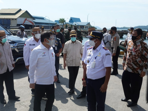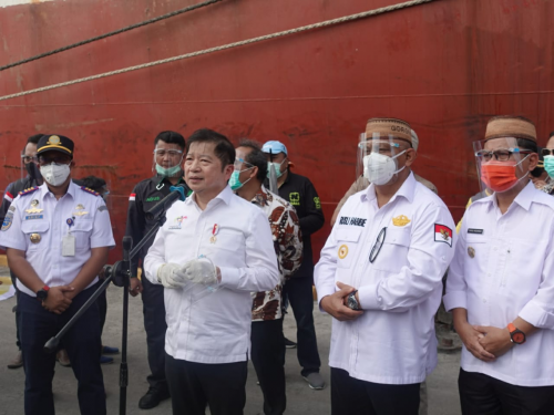 GORONTALO (18/8) - Dalam rangka HUT RI ke 75 dan pada masa kebiasaan baru di tengah pandemi Covid – 19, Kementerian Perhubungan cq. Ditjen Perhubungan Laut melalui Unit Penyelenggara Pelabuhan (UPP) Kelas II Anggrek bersinergi dengan Pemda setempat dengan mengoptimalisasikan pelayanan kepelabuhanan dalam mendukung  pengiriman 12.000 ton komoditi jagung dan 11.700 ton tetes tebu (molase) di Pelabuhan Anggrek, Desa Ilangata Kecamatan Anggrek, Kabupaten Gorontalo Utara ke Pilipina dengan tetap memperhatikan dan menerapkan protokol kesehatan.