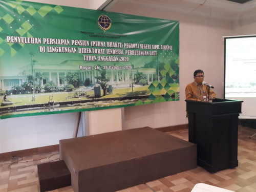 JAKARTA (26/10) – Direktorat Jenderal Perhubungan Laut Kementerian Perhubungan melalui Bagian Kepegawaian melaksanakan kegiatan Penyuluhan Persiapan Pensiun (Purna Bakti) Pegawai Negeri Sipil Tahap II Di Lingkungan Direktorat Jenderal Perhubungan Laut (Ditjen Hubla) selama 3 (tiga) hari mulai tanggal 26 s.d. 28 Oktober 2020 di Hotel Sahira Bukti, Bogor.