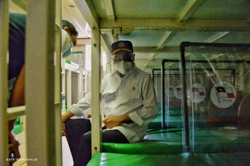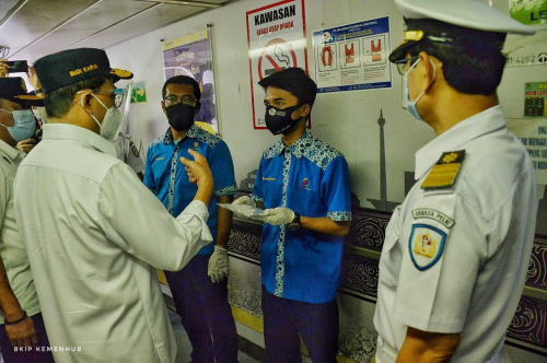 Dalam tinjauannya ke Kapal Kelud tujuan Batam, Menhub mengecek seluruh fasilitas dan memastikan semua telah diterapkan protokol kesehatan seperti penyemprotan disinfektan dan kebersihan kapal.