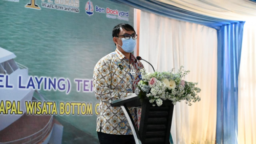 “Dari jumlah 4 (empat) unit Kapal Wisata Bottom Glass yang akan dibangun tersebut, Alhamdulillah pada hari ini, kita bersama-sama dapat menyaksikan peletakan lunas (keel laying) pembangunan 4 (empat) unit Kapal Wisata Bottom Glass,” ujar Andi saat membacakan sambutan Direktur Jenderal Perhubungan Laut pada acara Peletakan Lunas (Keel Laying) Terpadu Kegiatan Pembangunan 4 (empat) Unit Kapal Wisata Bottom Glass di Tanjung Priok Jakarta, Selasa (17/11).