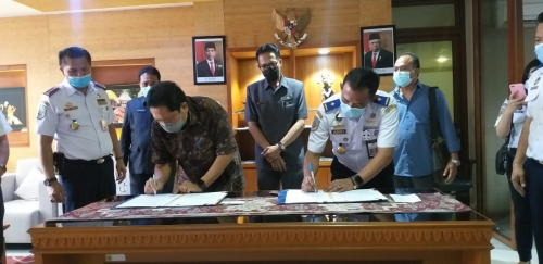 KEMENHUB DAN PEMERINTAH KOTA DENPASAR TANDATANGANI PERJANJIAN HIBAH DAERAH DAN BERITA ACARA SERAH TERIMA BARANG MILIK DAERAH