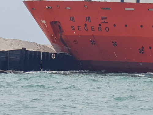 "Betul, kemarin pagi sekitar pukul 03.30 WIB dinihari, jadi kapal jenis tongkang bernama PCF 2402 berbendera Indonesia yang ditarik oleh kapal TB Indah Laut 2201 mengalami kecelakaan bertubrukan dengan kapal MV Segero berbendera Korea Selatan," kata Capt. Herbert, Jumat (15/1).