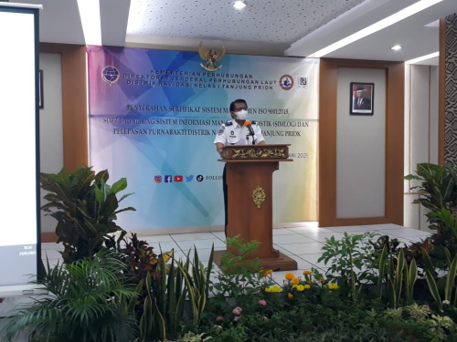 “Penyerahan Sertifikasi ISO 9001:2015 yang pada hari ini diberikan kepada Distrik Navigasi Kelas I Tanjung Priok telah dikukuhkan dengan adanya akreditasi dari UKAS United Kingdom Accreditation Service (UKAS), sehingga ke depan Distrik Navigasi Kelas I Tanjung Priok diharapkan untuk terus berkomitmen meningkatkan pelayanan kepada masyarakat sesuai manajemen mutu pelayanan dan menjamin kepuasan bagi para pengguna jasanya,” kata Budi Yulianti.