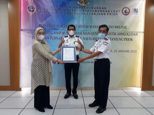 JAKARTA (26/1) – Distrik Navigasi Kelas I Tanjung Priok sebagai salah satu Unit Pelaksana Teknis (UPT) Direktorat Jenderal Perhubungan Laut berhasil memperoleh Sertifikat ISO 9001:2015 dari PT. Lloyd’s Register Indonesia atas prestasinya dalam menerapkan manajemen mutu dalam bidang pelayanan publik. Penyerahan Sertifikat ISO 9001:2015 tersebut dilakukan oleh Perwakilan PT. Lloyd’s Register Indonesia, Budi Yulianti kepada Kepala Distrik Navigasi Kelas I Tanjung Priok, M. Tohir disaksikan oleh Direktur Kenavigasian, Hengki Angkasawan bertempat  di Kantor Distrik Navigasi Kelas I Tanjung Priok, Jakarta.