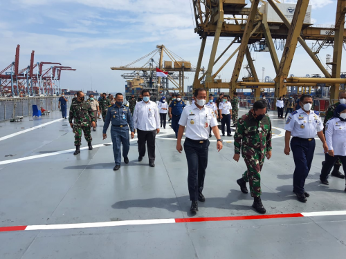JAKARTA (4/3) - Kementerian Perhubungan cq. Direktorat Jenderal Perhubungan Laut ikut menghadiri acara yang digelar oleh Komando Lintas Laut Militer (Kolinlamil). Pertemuan yang dilakukan di geladak KRI Banda Aceh 593 tersebut sekaligus bertujuan untuk memperkuat koordinasi dan sinergi sektor transportasi laut bersama Forkominda dan unsur Maritim wilayah Jakarta Utara.