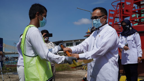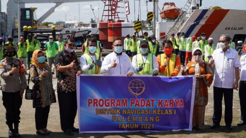 PALEMBANG (18/3) - Dalam rangka meningkatkan produksi dan nilai tambah, perluasan kesempatan kerja sementara, serta melakukan perawatan fasilitas pelayanan khususnya di masa pandemi covid-19, Kementerian Perhubungan melalui Direktorat Jenderal Perhubungan Laut menggelar program padat karya di 2 (dua) lokasi, yakni Palembang dan Sabang.
