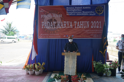 PONTIANAK (5/4) - Kementerian Perhubungan cq Direktorat Jenderal Perhubungan Laut melalui Kantor Distrik Navigasi (Disnav) Kelas III Pontianak menggelar program Padat Karya tahun anggaran 2021. Kegiatan ini berlangsung selama 12 hari (29 Maret-12 April 2021) melibatkan 70 orang masyarakat setempat dengan menerapkan protokol kesehatan.