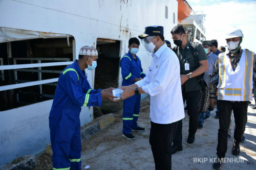 Pada kunjungan ini, Menteri Budi juga menyerahkan bantuan berupa barang-barang kebutuhan pokok (sembako), kepada masyarakat dan para petugas di bandara dan pelabuhan. Menhub pun membagikan sejumlah masker kepada para calon penumpang dan petugas.
