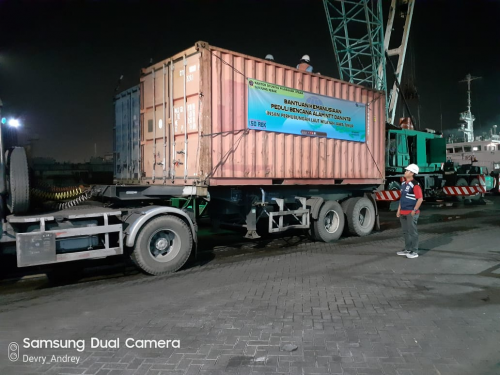 Adapun bantuan tahap pertama yang sudah diberangkatkan dari Pelabuhan Tanjung Perak pada tanggal 19 April 2021 sebanyak 1 (satu) Kontainer melalui KM. Sakura 09 milik PT. Suntraco tujuan Kupang berisi semen 500 sak, mie instan, minyak goreng, air mineral, makanan bayi, susu, pakaian, sarung, selimut, masker dan popok bayi.