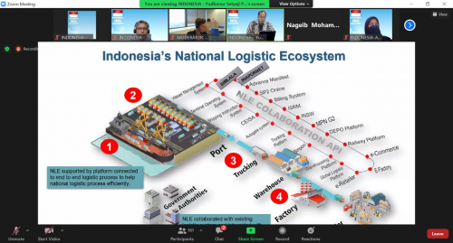 Sementara itu dalam paparannya, Yudho menjelaskan bahwa National Logistic Ecosystem (NLE) merupakan platform yang akan mengkolaborasikan aplikasi logistik secara end to end sehingga proses nasional logistik dapat menjadi lebih efisien. Ia juga memaparkan bagaimana alur distribusi barang dan alur Inaportnet yang didukung oleh sistem informasi yang terintegrasi.