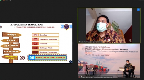 JAKARTA (23/6). Kementerian Perhubungan cq Direktorat Jenderal Perhubungan Laut melalui Direktorat Kepelabuhanan menggelar acara Pelatihan Peningkatan Keterampilan Teknis Bagi KPA dan PPK Kegiatan Pembangunan Fasilitas Pelabuhan Tahun Anggaran 2021. Acara digelar di Jakarta pada 23 - 24 Juni 2021.