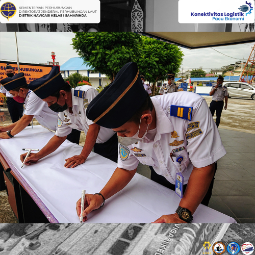 Pada Senin , 12 Juli 2021 . Distrik Navigasi Kelas I Samarinda mengadakan acara Komitmen Bersama seluruh pegawai Kantor , Baik bidang adminstrasi kantor , Pelayanan Publik , Instalasi Bengkel , SROP , Kapal Negara hingga Pengamatan Laut.