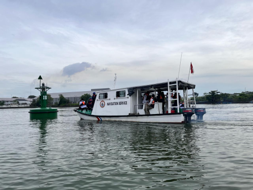 Dalam kesempatan tersebut, dilakukan peninjauan langsung terhadap unit Smart Buoy Nomor 19 serta demonstrasi sistem monitoring digital yang menampilkan performa lampu dan sensor Pelampung Suar secara terintegrasi.